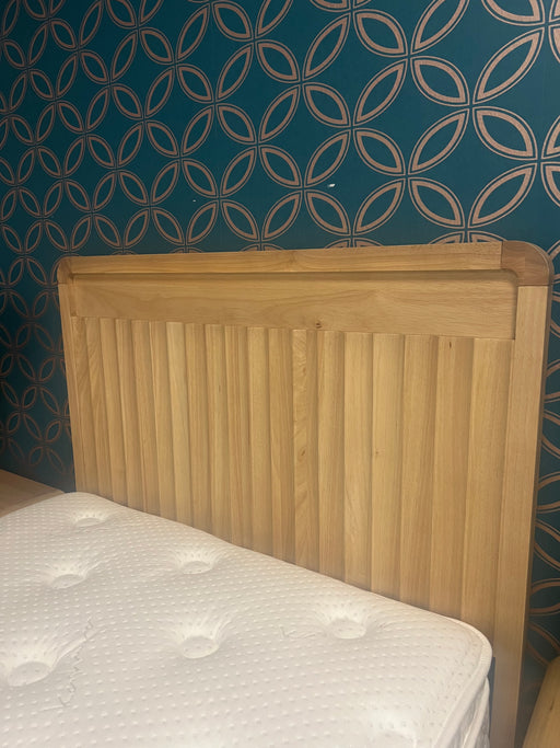 View full detailsRiveo Oak-Veneered Bed -Frame Bring calm, contemporary style to your bedroom with this beautifully crafted oak-finish bed frame. Featuring a gentl...